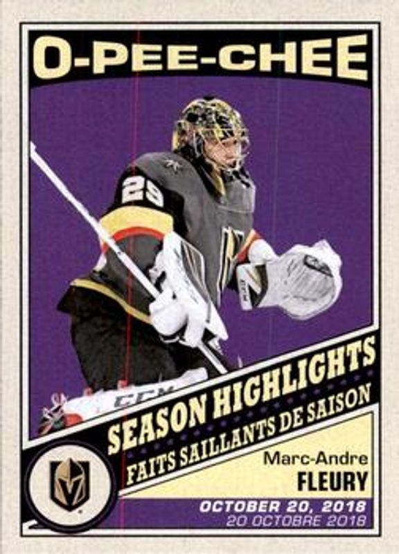 Marc-Andre Fleury 2019 O-Pee-Chee #593 Retro Blank Back RAW Price Guide