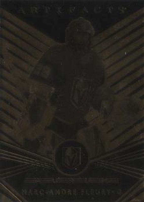 The Marc-Andre Fleury 2019 Upper Deck Artifacts #A-34 Aurum card is 1 of 25 Marc-Andre Fleury's card variations in the 2019 Upper Deck Artifacts set being tracked by Sports Card Investor, including Base /999, Ruby /399, Copper /299, Emerald /99, and Aqua /45.