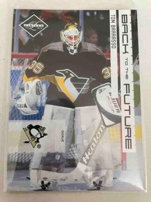 The Marc-Andre Fleury / Tom Barrasso 2010 Limited #15 Back to the Future /199 card is 1 of 3 Marc-Andre Fleury / Tom Barrasso's card variations in the 2010 Limited set being tracked by Sports Card Investor, including Back to The Future Signatures /25, and Back To The Future Signatures Platinum /1.