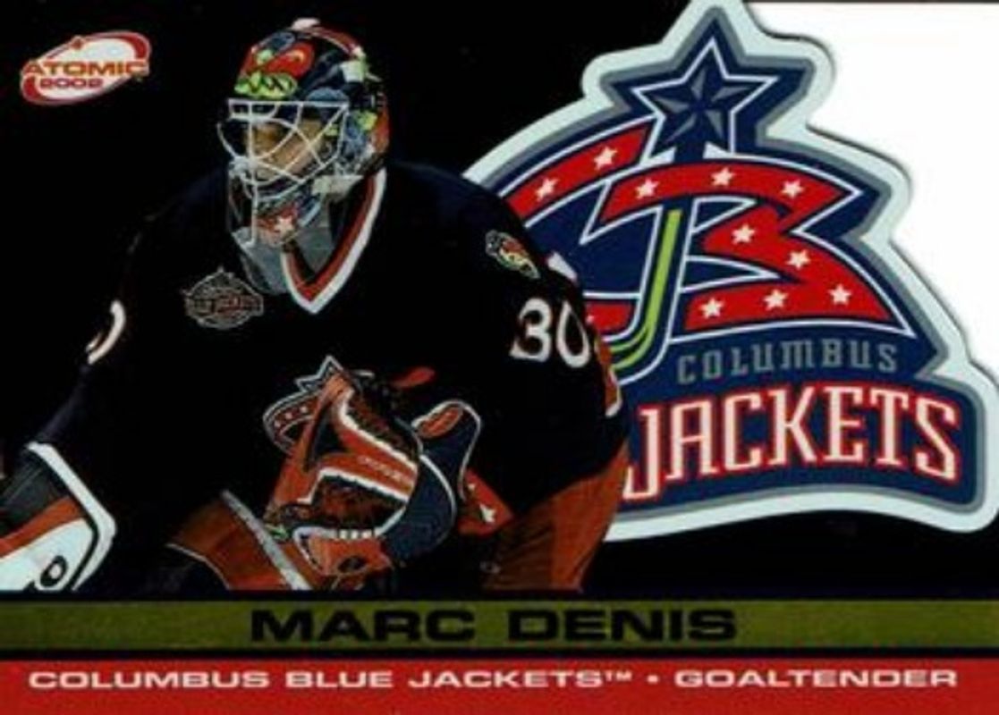 The Marc Denis 2001 Pacific Atomic #29 Gold /200 card is 1 of 5 Marc Denis' card variations in the 2001 Pacific Atomic set being tracked by Sports Card Investor, including Base /500, Red /290, Premiere Date /90, and Blue /9.