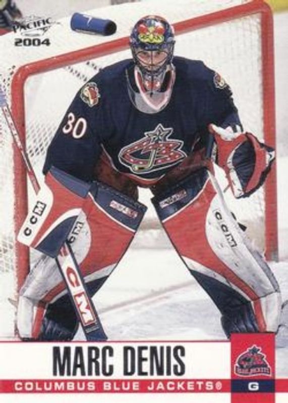 The Marc Denis 2003 Pacific #92 Base /999 card is 1 of 5 Marc Denis' card variations in the 2003 Pacific set being tracked by Sports Card Investor, including Red, Blue /250, L'Internationale des Collectionneurs Montreal /1, and National Convention /1.