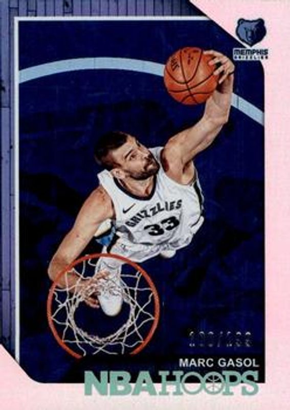 The Marc Gasol 2018 Hoops #183 Silver /199 card is 1 of 21 Marc Gasol's card variations in the 2018 Hoops set being tracked by Sports Card Investor, including Base, Red Backs, Premium Box Set /199, Blue, and NBA City.
