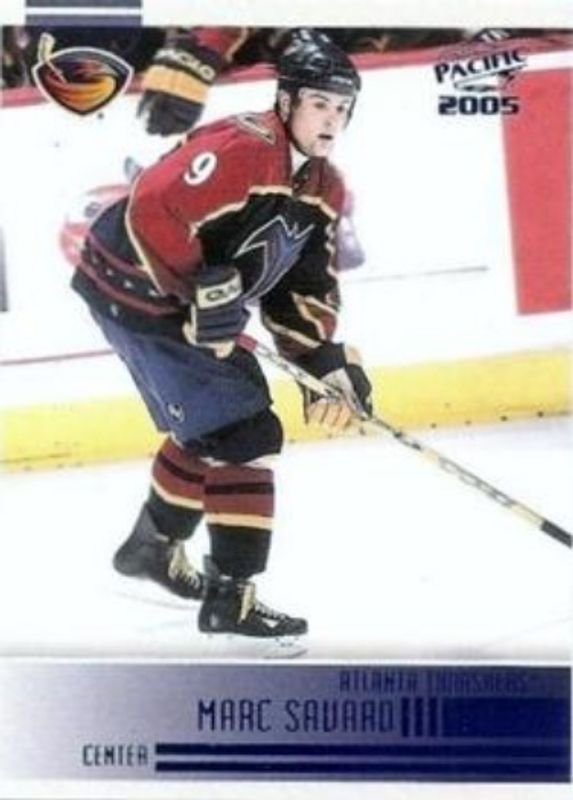 The Marc Savard 2004 Pacific #17 Blue /250 card is 1 of 3 Marc Savard's card variations in the 2004 Pacific set being tracked by Sports Card Investor, including Base, and Red.