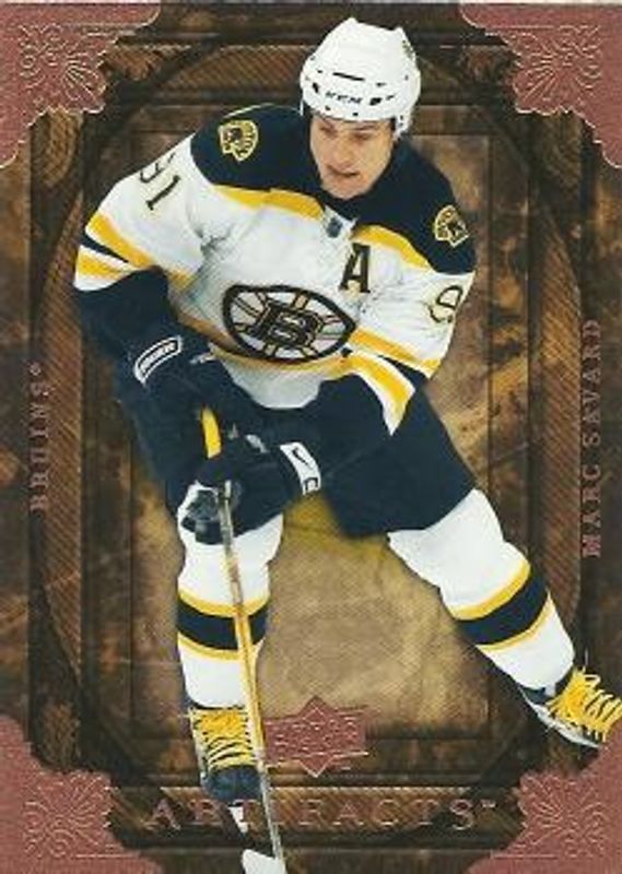 The Marc Savard 2008 Upper Deck Artifacts #94 Base /999 card is 1 of 20 Marc Savard's card variations in the 2008 Upper Deck Artifacts set being tracked by Sports Card Investor, including Gold /75, Blue /50, Copper Spectrum /25, Silver Spectrum /10, and Gold Spectrum /5.