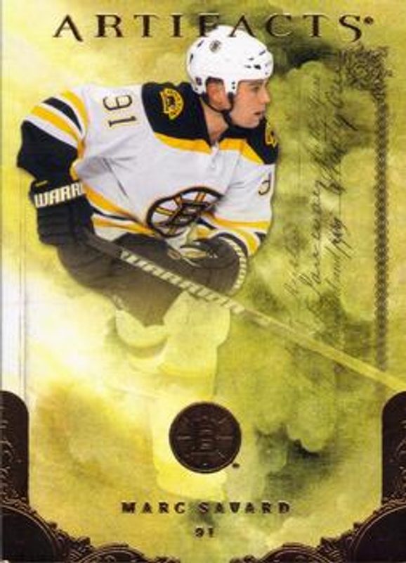 The Marc Savard 2010 Upper Deck Artifacts #26 Base /699 card is 1 of 8 Marc Savard's card variations in the 2010 Upper Deck Artifacts set being tracked by Sports Card Investor, including Emerald /50, Gold /35, Silver /25, Rainbow /10, and Jerseys Patches - Gold /15.