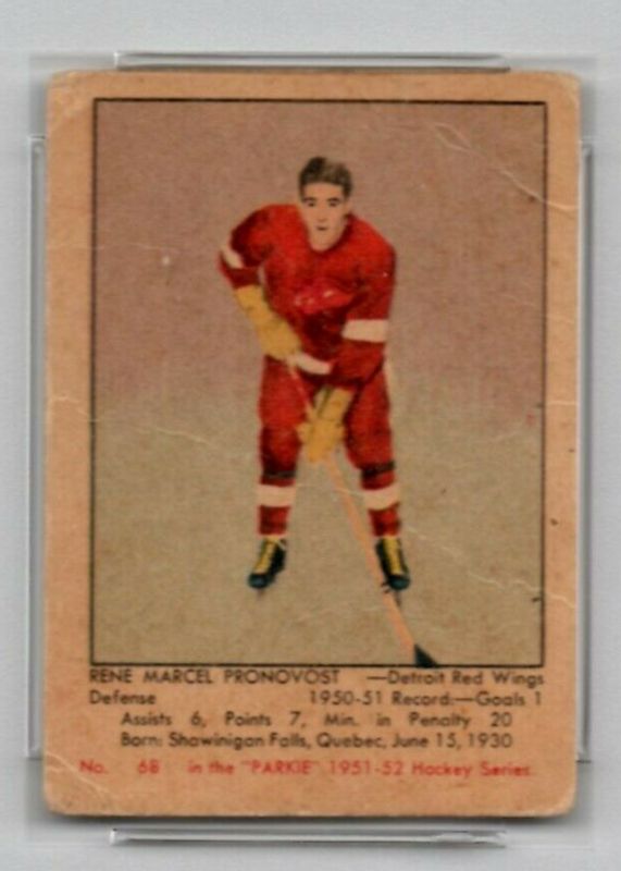 Marcel Pronovost's Hockey cards are available in at least 8 sets. Marcel Pronovost's biggest 7-day price movers are 1951 Parkhurst #68 Base, 1964 Topps #39 Base, and 1962 Parkhurst #33 Base.