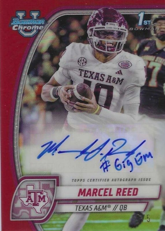 Marcel Reed 2024 Bowman Chrome University #PA-MR Prospect Auto - Red Refractor /5 (1st) RAW Price Guide