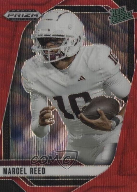 This card is 1 of 43 Marcel Reed's card variations in the 2025 Prizm Draft Picks set being tracked by Sports Card Investor, including Base, Gold Ice, Green, Purple Wave, and Red Ice.