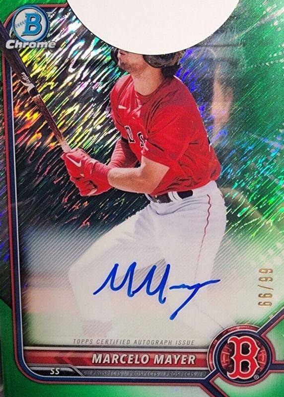 2022 Bowman Chrome Marcelo Mayer Prospect Green Shimmer Auto /99 Red Sox
