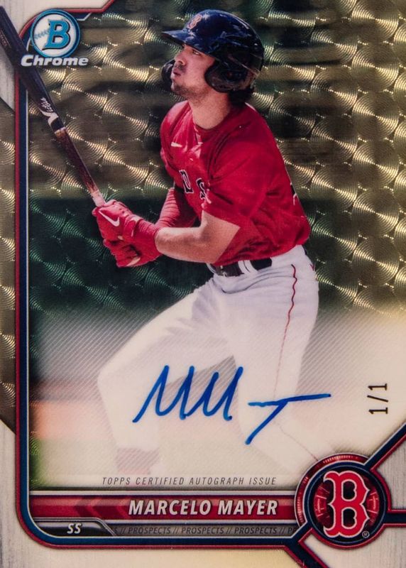 Marcelo Mayer 2022 Bowman #CPA-MMY Chrome Prospect Auto - Superfractor /1 RAW Price Guide