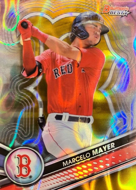 Best Prices Available For Sale of Marcelo Mayer 2022 Bowman's Best #TP-8 Top Prospects - Gold Lava Refractor /75