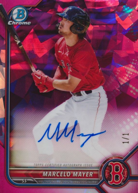 Marcelo Mayer 2022 Bowman Sapphire Edition #BSPA-MMY Chrome Prospect Auto - Padparadscha /1 RAW Price Guide