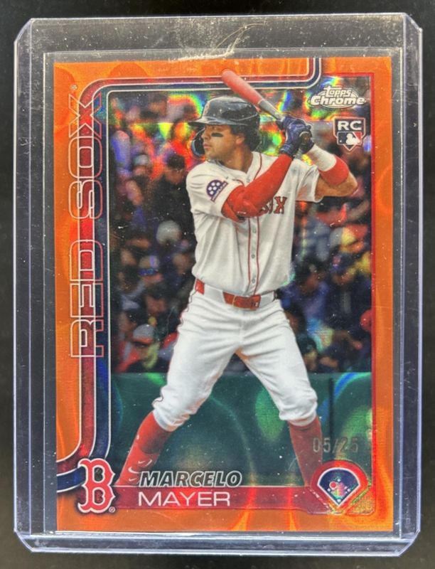 The Marcelo Mayer 2025 Topps Chrome Update #USC9 Orange RayWave Refractor /25 Rookie card in Raw condition has not changed in price in the last 30 days.