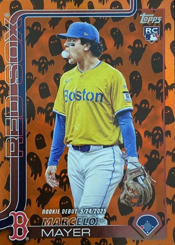 The Marcelo Mayer 2025 Topps Update #US276 Rookie Debut - Holiday Ghost card in Raw condition has moved down -$3.75 (-46.9%) in the last 30 days and was last sold for $4.25 .