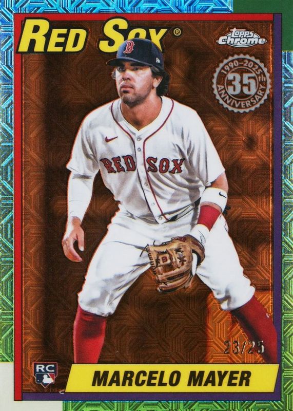 This card is 1 of 18 Marcelo Mayer's card variations in the 2025 Topps Update Silver Pack set being tracked by Sports Card Investor, including 1990 Chrome, 1990 Chrome Autographs /299, 1990 Chrome Autographs - Purple Refractor /250, 1990 Chrome - Purple Refractor /250, and 1990 Chrome Autographs - Blue Refractor /150.