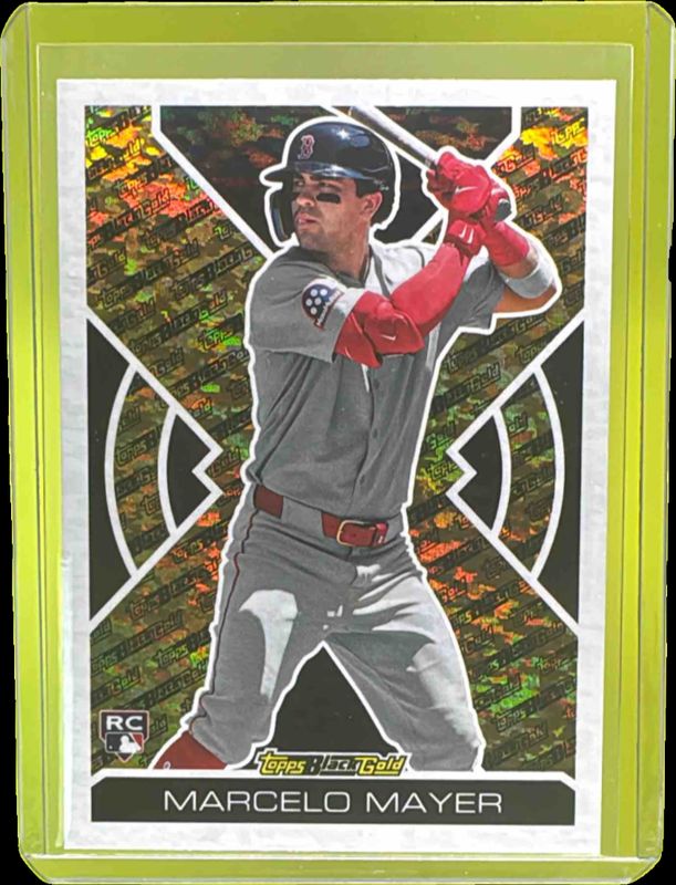The Marcelo Mayer 2025 Topps Update #BG-13 Topps Black Gold Rookie card is 1 of 185 Marcelo Mayer's card variations in the 2025 Topps Update set being tracked by Sports Card Investor, including Base, Rookie Debut, Aqua Holo Foil, Aqua Rainbow Foil, and Diamante Foil.