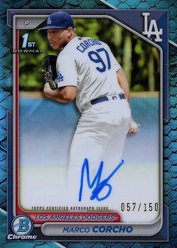 MARCO CORCHO 2024 1st Bowman Chrome Reptilian Blue Refractor AUTO /150 Dodgers