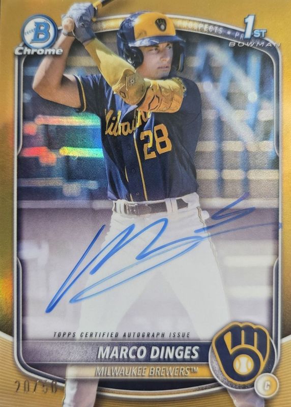 2025 BOWMAN CHROME MARCO DINGES TRUE GOLD 1ST AUTO /50 #CPA-MD MILWAUKEE BREWERS