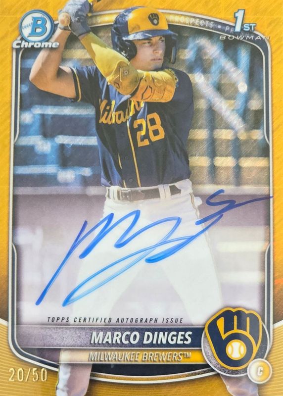 Marco Dinges 2025 Bowman Chrome Gold Shimmer /50 1st Auto Brewers - COLOR MATCH!