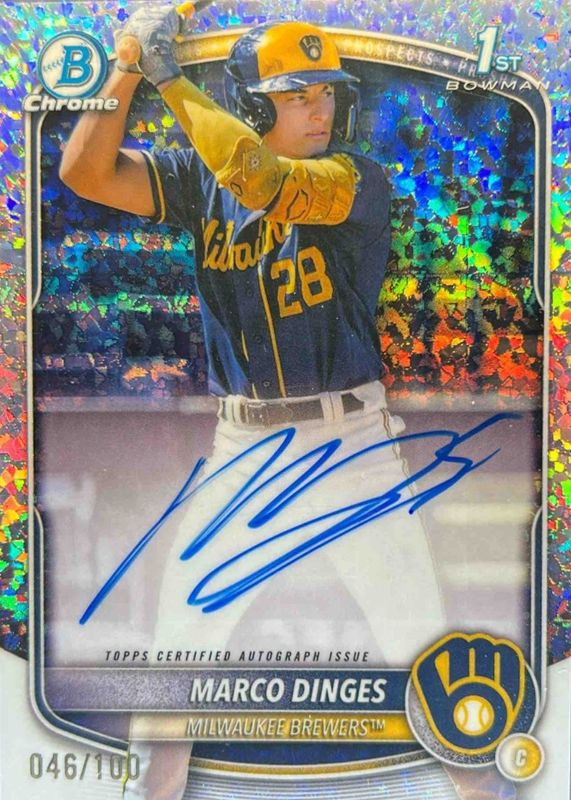 2025 Bowman Chrome Marco Dinges Mini-Diamond Refractor 51/100 1st Auto - BREWERS