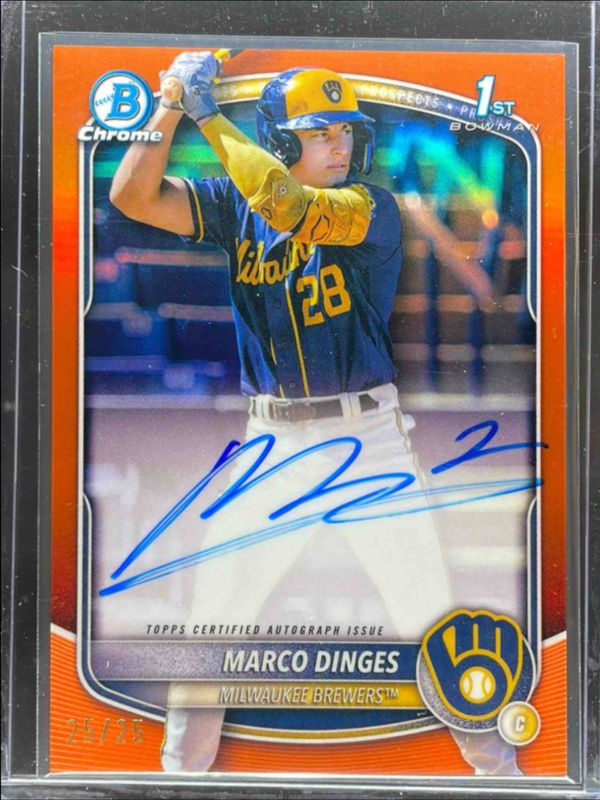 2025 Bowman Chrome MARCO DINGES 1st Auto TRUE ORANGE /25 Milwaukee Brewers🔥