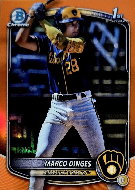 Best Prices Available For Sale of Marco Dinges 2025 Bowman Chrome #BCP-183 Prospects - Orange Refractor /25 (1st)