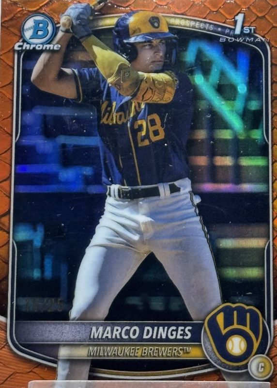 MARCO DINGES 2025 BOWMAN CHROME 1ST ORANGE REPTILIAN BREWERS #/25 BCP-183