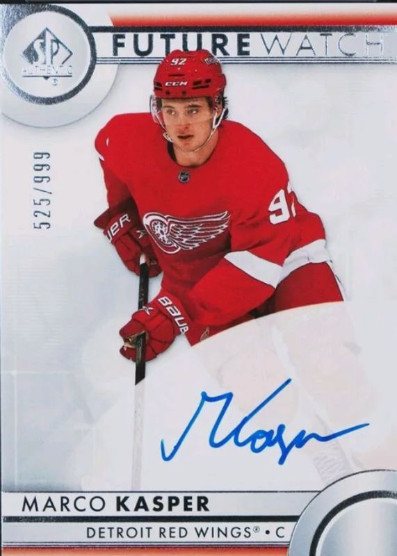 This card is 1 of 3 Marco Kasper's card variations in the 2023 SP Authentic set being tracked by Sports Card Investor, including Future Watch Auto - Mystery Black, and Future Watch Auto /999.