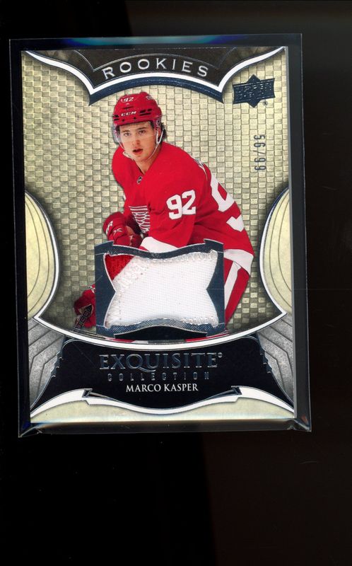 The Marco Kasper 2023 Upper Deck Black Diamond #RP-MK Exquisite Collection Rookies - Patch /99 card is 1 of 56 Marco Kasper's card variations in the 2023 Upper Deck Black Diamond set being tracked by Sports Card Investor, including Base /349, Red /75, Blue /25, Pure Black Auto /25, and Green /10.