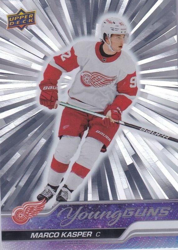 This card is 1 of 11 Marco Kasper's card variations in the 2023 Upper Deck set being tracked by Sports Card Investor, including Young Guns Base, Young Guns Canvas, Young Guns Canvas - Black & White, Young Guns - Clear Cut, and Young Guns - Jumbo.