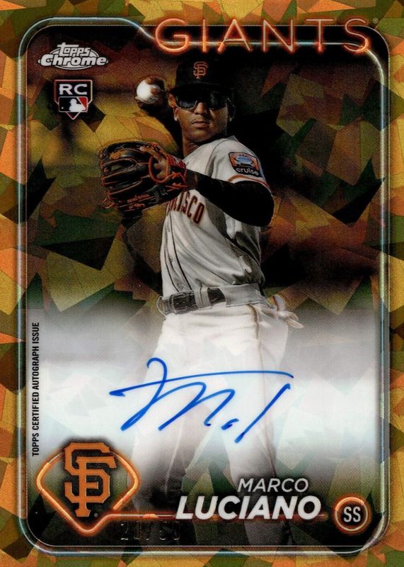 Auctions Ending Soon for Marco Luciano 2024 Topps Chrome Update Sapphire Edition #USA-ML Autographs - Gold /50 Rookie RAW