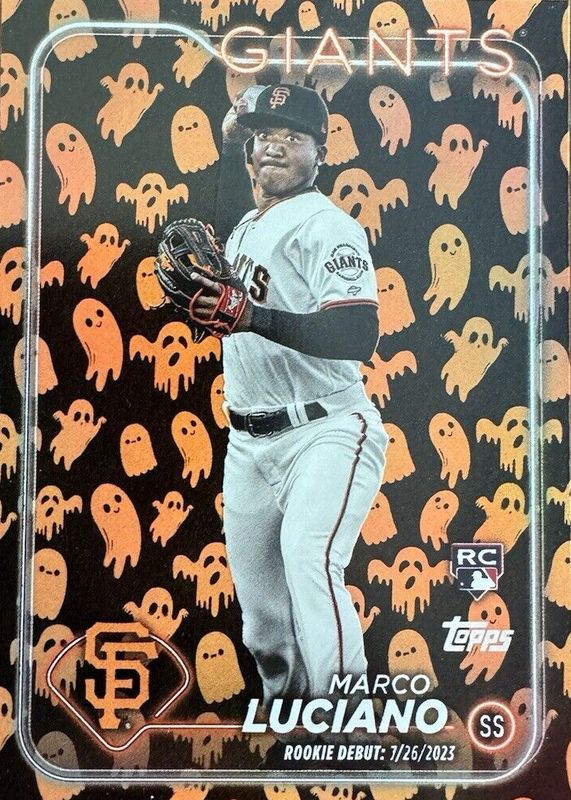 This card is 1 of 43 Marco Luciano's card variations in the 2024 Topps Update set being tracked by Sports Card Investor, including Rookie Debut, Rookie Debut - Aqua, Rookie Debut - Gold Rainbow Foil, Rookie Debut - Jack O' Lantern Foil, and Rookie Debut - Mummy Foil.