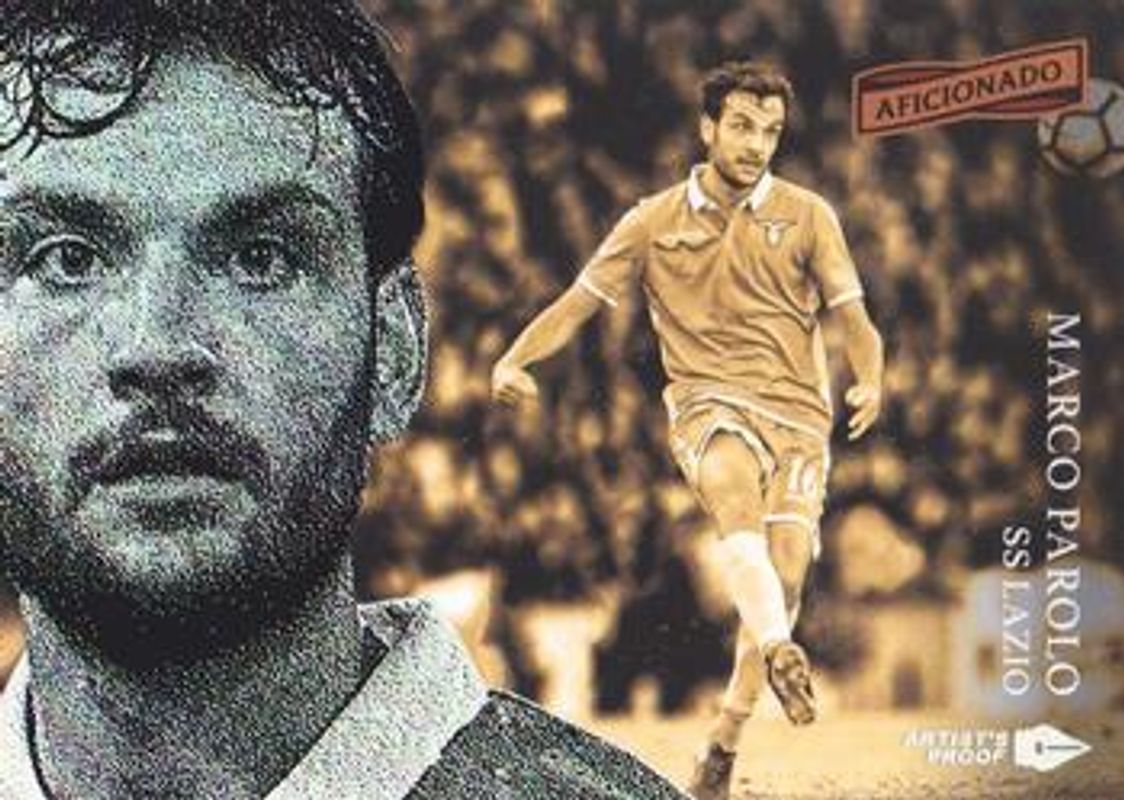 The Marco Parolo 2016 Aficionado #146 Artist's Proof card is 1 of 6 Marco Parolo's card variations in the 2016 Aficionado set being tracked by Sports Card Investor, including Base, First Kick, Artist's Proof Red /99, Artist's Proof Bronze /49, and Artist's Proof Gold /1.