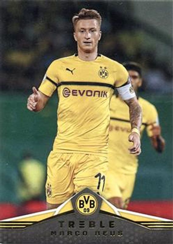 The Marco Reus 2018 Treble #70 Base card is 1 of 17 Marco Reus' card variations in the 2018 Treble set being tracked by Sports Card Investor, including Blue /75, Purple /49, Gold /25, Green /10, and Platinum /1.