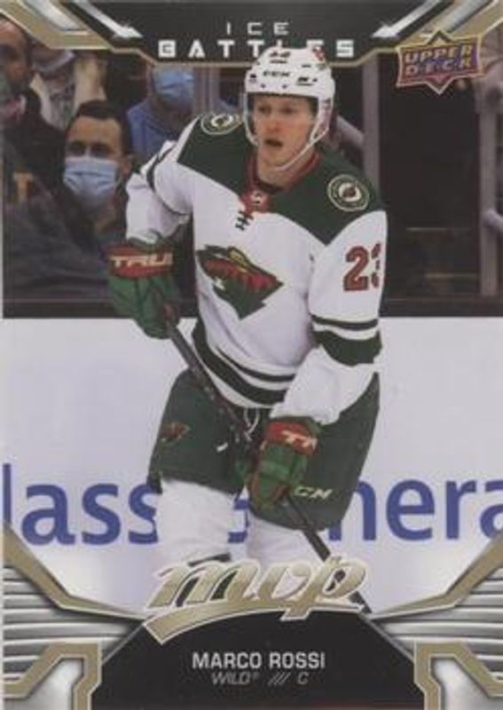 The Marco Rossi 2022 Upper Deck MVP #221 Ice Battles - Gold Rookie card is 1 of 29 Marco Rossi's card variations in the 2022 Upper Deck MVP set being tracked by Sports Card Investor, including Base, Blue Script, Gold Script, Ice Battles, and Silver Script.