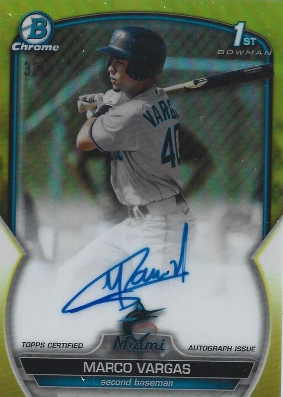 2023 Bowman Chrome Marco Vargas CPA-MVA 1st Yellow Refractor Auto /75 Marlins