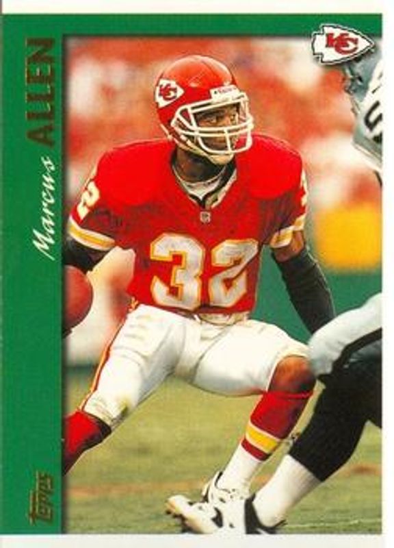 The Marcus Allen 1997 Topps #250 Base card is 1 of 6 Marcus Allen's card variations in the 1997 Topps set being tracked by Sports Card Investor, including #250 Minted in Canton, #250 Promos, #2 Career Best, #3 Career Best, and #HB3 Hall Bound.