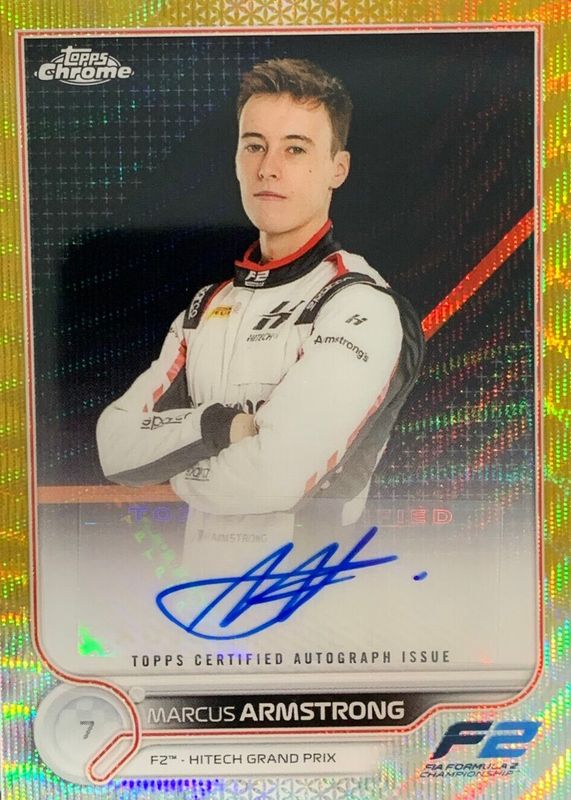 Best Prices Available For Sale of Marcus Armstrong 2022 Topps Chrome Formula 1 #CAC-MA Autographs - Gold Wave Refractor /50
