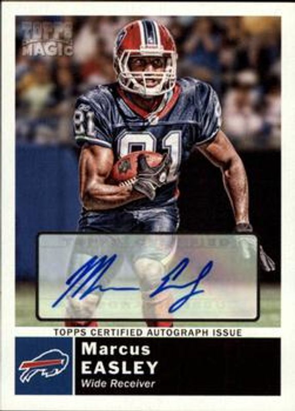 The Marcus Easley 2010 Topps Magic #20 Autographs /100 Rookie card is 1 of 6 Marcus Easley's card variations in the 2010 Topps Magic set being tracked by Sports Card Investor, including Base, Mini, Mini Black, Mini Pigskin 50 /50, and Autographs - Chrome Refractor /10.