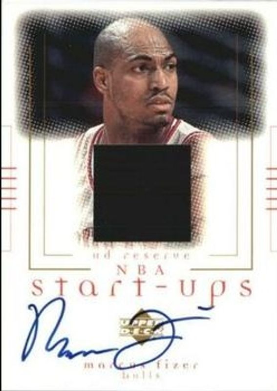 The Marcus Fizer 2000 Upper Deck Reserve #MF-A NBA Start Ups Autographs /8 Rookie card is 1 of 6 Marcus Fizer's card variations in the 2000 Upper Deck Reserve set being tracked by Sports Card Investor, including #94 Base, #MF NBA Start Ups, #204 Autographed Buybacks /51996973, #PM3 Autographed Buybacks /51996973, and #SF9 Autographed Buybacks /51996973.