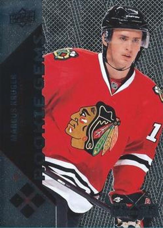 The Marcus Kruger 2011 Upper Deck Black Diamond #245 Base Rookie card is 1 of 6 Marcus Kruger's card variations in the 2011 Upper Deck Black Diamond set being tracked by Sports Card Investor, including Ruby /100, Gold /10, Platinum /1, Lustrous Rookies, and 2011 Upper Deck Ice /1999.