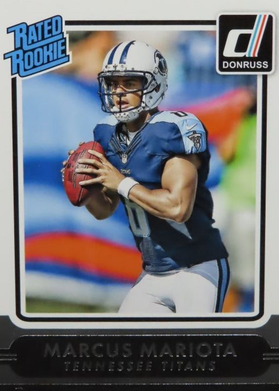 The Marcus Mariota 2015 Donruss #202 Base Rookie card in Raw condition has not changed in price in the last 30 days and was last sold for $1.99 .