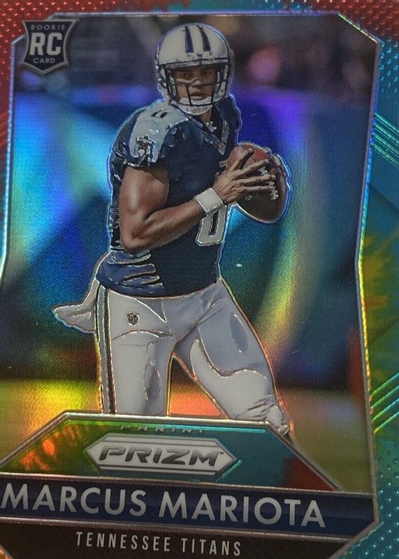 This card is 1 of 16 Marcus Mariota's card variations in the 2015 Prizm set being tracked by Sports Card Investor, including Base, Blue, Green, Red, and Red White Blue.