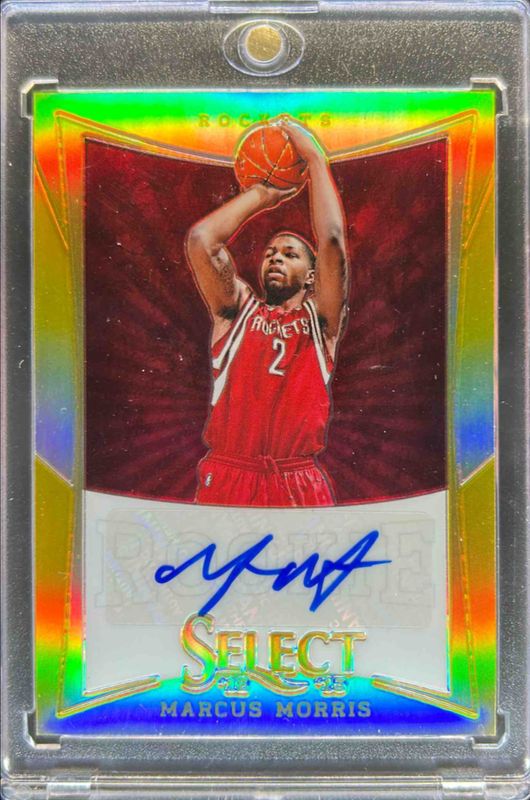 The Marcus Morris 2012 Select #176 Gold /10 Rookie card is 1 of 20 Marcus Morris' card variations in the 2012 Select set being tracked by Sports Card Investor, including #176 Base, #249 Base, #249 Silver, #176 Silver, and #249 Gold /10.