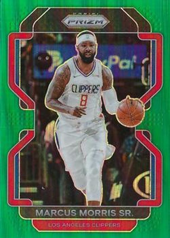 The Marcus Morris 2021 Prizm #14 Green card is 1 of 60 Marcus Morris' card variations in the 2021 Prizm set being tracked by Sports Card Investor, including Base, Blue NBA 75th Anniversary, Blue Wave, Choice Blue Yellow Green, and Factory Set Blue Hyper.