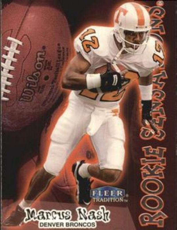 The Marcus Nash 1998 Fleer Tradition #11-RS Rookie Sensations card is 1 of 3 Marcus Nash's card variations in the 1998 Fleer Tradition set being tracked by Sports Card Investor, including Base, and Heritage /125.