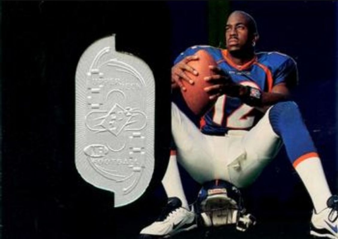 Other popular players in the 1998 SPx Finite set include Dan Marino, Troy Aikman, Brett Favre, Barry Sanders, and Eddie George.