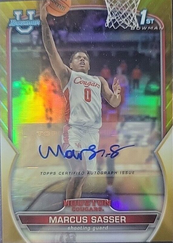 Best Prices Available For Sale of Marcus Sasser 2022 Bowman Chrome University #93 Prospect Autographs - Gold Lava Refractor /50 (1st)