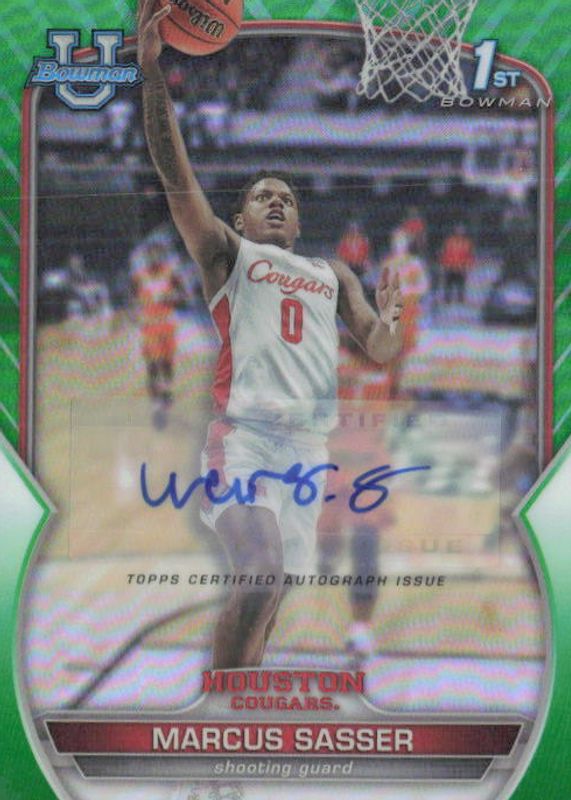 MARCUS SASSER 2022-23 BOWMAN UNIVERSITY CHROME 1ST GREEN REF. AUTO /99 Q5081