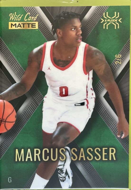 The Marcus Sasser 2022 Wild Card Matte #MXP-33 X Plode Gold Green X /6 card is 1 of 343 Marcus Sasser's card variations in the 2022 Wild Card Matte set being tracked by Sports Card Investor, including Base, 5 Stripe Black, 5 Stripe White, Black, and Blue Chase.